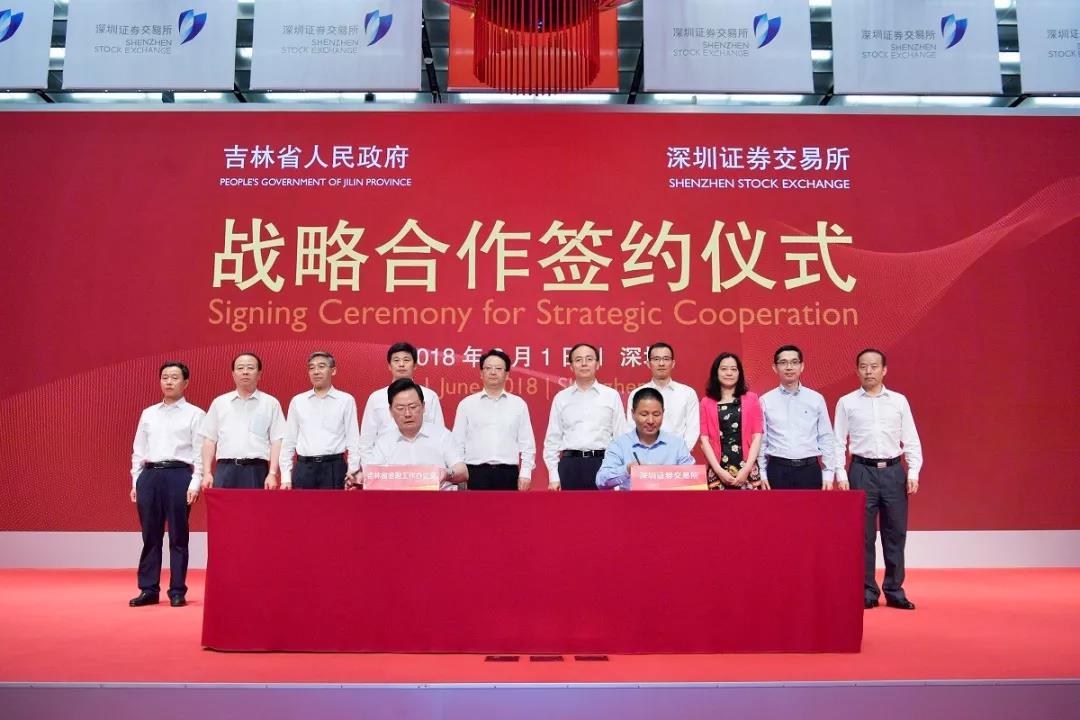 2018年6月1日,深交所與吉林省在深圳共同舉辦戰(zhàn)略合作簽約儀式。這是深交所強(qiáng)化與地方政府合作,發(fā)揮資本市場(chǎng)平臺(tái)作用,服務(wù)地方經(jīng)濟(jì)轉(zhuǎn)型升級(jí)、促進(jìn)區(qū)域協(xié)調(diào)發(fā)展的又一重要成果。吉林省省長(zhǎng)景俊海、副省長(zhǎng)金育輝、長(zhǎng)春市市長(zhǎng)劉長(zhǎng)龍、省政府秘書(shū)長(zhǎng)彭永林、深交所理事長(zhǎng)吳利軍等出席簽約儀式,吉林省金融辦主任胡斌與深交所總經(jīng)理王建軍共同簽署協(xié)議,吉林省、深圳市、深交所有關(guān)領(lǐng)導(dǎo)參加相關(guān)活動(dòng)。
